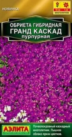 Серия красивоцветущей каскадной обриеты. Это прекрасная почвопокровная многолетняя культура для создания бордюров, украшения каменистых горок и подпорных стенок в саду. Растения высотой около 10 см, диаметром до 40-50 см, зимостойкие. Быстро восстанавливают декоративный облик весной после схода снега и зацветают в мае пышным ковром ярких цветков 1 см. Обриета незаменима на каждом участке, потому что пик ее цветения приходится на межсезонье (конец весны), когда отцвели первоцветы, а большинство однолетников и многолетников только формируют бутоны.