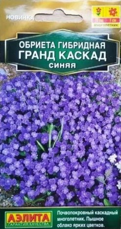 Серия красивоцветущей* каскадной обриеты. Это прекрасная почвопокровная многолетняя культура для создания бордюров, украшения каменистых горок и подпорных стенок в саду. Растения высотой около 10 см, диаметром до 40-50 см, зимостойкие. Быстро восстанавливают декоративный облик весной после схода снега и зацветают в мае пышным ковром ярких цветков ? 1 см. Обриета незаменима на каждом участке, потому что пик ее цветения приходится на межсезонье (конец весны), когда отцвели первоцветы, а большинство однолетников и многолетников только формируют бутоны.