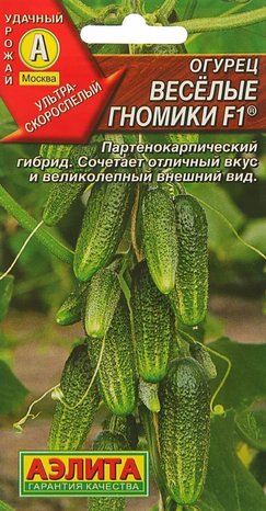 Высокоурожайный, ультраскороспелый, партенокарпический гибрид для открытого грунта и пленочных теплиц. Период от всходов до начала плодоношения38-40 дней. Плод цилиндрический, мелкобугорчатый, опушение белое, длиной 8-9 см, массой 70-90 г. Вкусовые качества отличные. Гибрид пригоден для потребления в свежем виде, засолки и консервирования. Отличный вкус и внешний вид огурцов в сочетании с высокой урожайностью (12-13 кг/м2) позволяют использовать их не только для собственного потребления, но и на продажу.