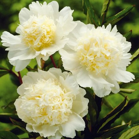 (Charle'S White) молочноцветковый Высота растения 70-90см. Цветки махровые, полушаровидной формы, диаметром до 20см. Внешние широкие лепестки, белой окраски, окружают нежно кремово-белый центр из более узких лепестков.