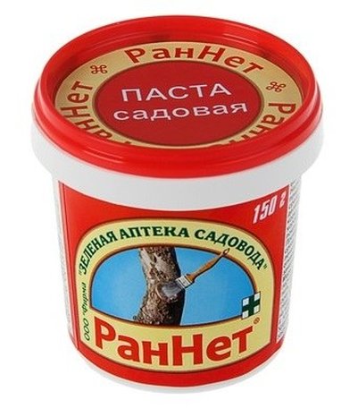 Паста РанНет гораздо удобнее садового вара в применении, садовая паста не застывает в холодную погоду, легко наносится на срезы кисточкой. Садовая паста-замазка РанНет: предотвращает соковыделение в местах срезов деревьев и кустарников, дезинфицирует раны; лечит повреждения коры, Стимулирует активное заживление раны.