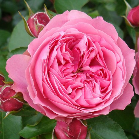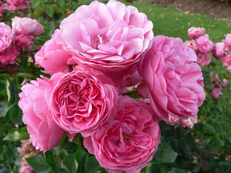 Очень эффектный сорт селекции всемирно известной французской компании Меян (Meilland), с насыщенно-розовыми густо-махровми (60 лепестков) цветками, квартированными в центре. Цветы, появляющиеся на протяжении всего сезона, равномерно распределены по поверхности куста, очень долго держатся и не выцветают, диаметром около 6-8 см. Кусты прямостоячие, мощные, плотные, высотой 100 см, с темно-зелеными, кожистыми, блестящими листьями. Сорт отличается абсолютной устойчивостью к болезням, хорошей устойчивостью к дождю.