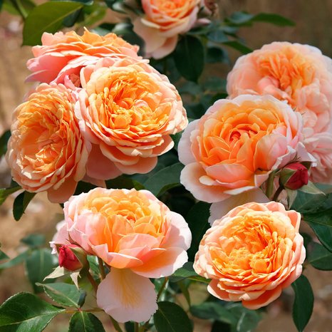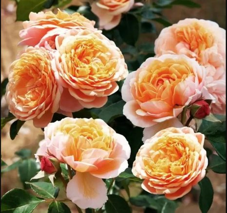Цветки густо-махровые с сильным ароматом! Оттенки цветов этой розы разные источники описывают как лососево-персиковый или темно-лососево-розовый, или оранжево-розовый. Цветки диаметром 10 см, густо-махровые (60-70 лепестков), крупные, чашевидные с сильным ароматом появляются в средних по численности соцветиях в течение всего сезона. Куст вертикальный, компактный, с темно-зеленой, глянцевой листвой, высотой 70-80 см и шириной 50 см.