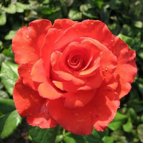 Крупные цветки классической формы, с высоким центром, из 25-30 глянцевых лепестков, на побегах главным образом одиночные. Куст вертикальный, хорошо разветвленный, листва крупная, кожистая, темно-зеленая. Сорт хорош на срезку.