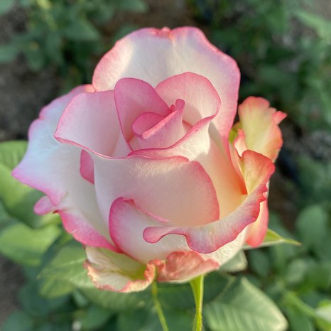 Роза Малибу (Rose Malibu) Чайно-гибридная. Кусты высотой до 120 см. Цветки крупные (до 10 см), густомахровые (до 50 лепестков), необычной кремовой, светло-розовой окраски. Сорт морозоустойчив, высокоустойчив к болезням.