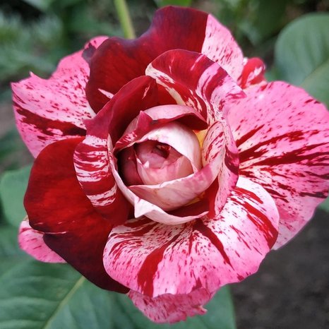 Роза чайно-гибридная "Пападжено" (красная с белыми полосками) — это эффектный сорт чайно-гибридной розы, который привлекает внимание своими уникальными цветами и ярким контрастом. Сочетание насыщенного красного цвета с белыми полосками делает её настоящей звездой любого сада. Высота куста 80-100 см. Ширина куста 60-70 см. Обильное и продолжительное, с июня до осени. Крупные махровые цветы диаметром 10-12 см. Нежный, сладкий аромат, с легкими фруктовыми нотами.