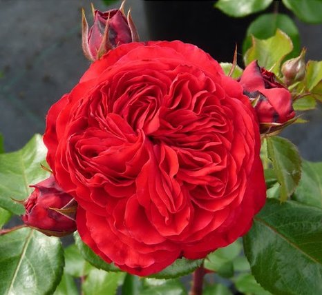 Ред Леонардо да Винчи представлен густым прямостоячим кустом с аккуратным красивым абрисом, прочными, стройными и малошипными побегами. Стебли густо покрыты крупными кожистыми темно-зелеными глянцевыми листьями. Размеры куста не впечатляют: высота — 0,7-1 м, диаметр — 0,7 м, но сам куст выглядит очень декоративно, даже если цветение еще не наступило.Малиново-пурпурные, крупные бокаловидные бутоны относятся к густомахровой категории, состоят из 90-100 и более лепестков. Раскрытые цветки больше похожи на старинные английские розы от 7 до 10 см в диаметре. В полном роспуске окраска теряет интенсивность, малиновые тона становятся более розовыми, полутона – более нежными, розовато-пунцовыми. Роза обладает тонким изысканным ароматом с фруктовыми нотками.