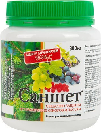 водно-суспензионный концентрат для защиты растений от солнечных ожогов и засухи. Применяется для декоративных деревьев и кустарников, декоративно-цветущих растений, винограда и ягодных кустарников, газонных трав. Препарат снижает тепловой стресс и повреждение растительных клеток, обеспечивает лучшую приживаемость после пересадки, положительно влияет на рост и развитие растений, способствует защите от солнечной инсоляции, минимизирует образование солнечных ожогов.