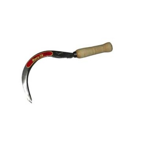 Предназначен для скоса небольшх участков травы на даче и в огороде. Материал рукоятки позволяет надёжно держать серп в руке. Длина лезвия 300 мм, лезвие – металл, материал ручки – дерево.