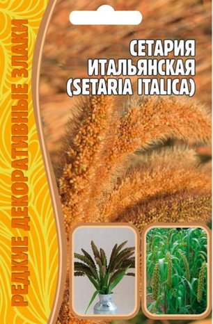Однолетнее злаковое растение с мощным плотным кустом, над которым в виде фонтана возвышаются крупные соцветия, и придают ему особую декоративность. Соцветия длиной 15- 20 см, изящно изогнуты вниз, плотные и очень пушистые, по внешнему виду напоминают лисий хвост. Окраска в начале цветения светло-зеленая, после созревания семян соломенно- желтая. Колошение начинается июля по август. Предпочитает открытые, солнечные места, к почвам не требовательна, засухоустойчива, заморозков не переносит. Используется в миксбордерах, для декорирования оград и хозяйственных построек. В срезке для создания зимних букетов и композиций с другими злаковыми культурами. ротехника