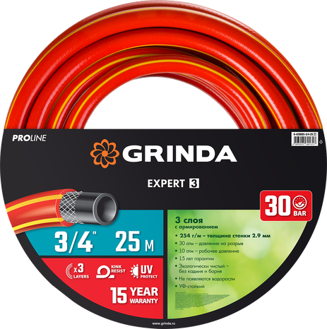 Эластичные трехслойные шланги GRINDA изготовлены из высококачественного ПВХ и армированы прочными полиамидными нитями. Высокая устойчивость формы достигается благодаря особой технологии армировки: нити накладываются под оптимальным углом к горизонтальной оси шланга. За счет этого диаметр и длина шланга остаются стабильными, он не перекручивается и не перегибается.