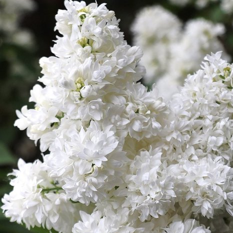 Куст высотой 3-4 м.Цветки чисто-белые, крупные, диаметром 3 см, густомахровые, с нежным ароматом. Морозостойкая. Хорошо переносит обрезку. Один из лучших белых махровых сортов сирени.