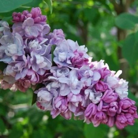 Сирень П.П. Кончаловский - Цветки от голубовато-лиловых с фиолетовым оттенком до голубых, крупные, диаметром 3 см, густомахровые. Лепестки широкоокруглые. Соцветия из двух-трёх пар метёлок. Метёлки широкопирамидальные, плотные. Кусты высокие (3 м), пряморослые. Цветение очень эффектное, в средние сроки.