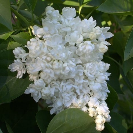Свое название он получил в 1974 году уже после смерти селекционера Л. А. Колесникова, и был назван в его честь. Эта сирень имеет большие соцветия снежно-белого цвета, которые достигают в высоту до 20 сантиметров. Как пышная невеста, закутанная в кружева, сирень распускается начиная с середины мая. Душистые цветы достигают в диаметре до 3 сантиметров, а их серединки стыдливо прикрыты овальными лепестками. Примечательно, что до распускания бутоны имеют кремово-желтый подтон, а сами цветы белые. Сирень обыкновенную Память о Колесникове относят к махровым сиреням из-за удивительного воздушного строения цветка, который напоминает бутоны полиантровых роз. Они не теряют форму, пока полностью не отцветут. Отличительной особенностью является и то, что данный сорт не завязывает семян. Высота растения может достигать 2,5-3 метра, а диаметр кроны – 2-2,5 метра.