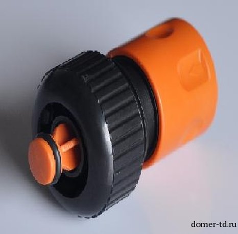 Пластмассовый быстросъемный соединитель с клапаном «аквастоп» совместим со шлангами диаметром 3/4"" и позволяет подключать их к распыляющим насадкам. Будет полезен при монтаже системы орошения на дачном участке.