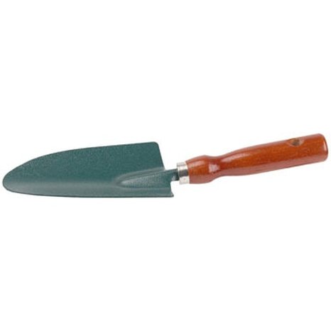 Рабочая часть изготовлена из высококачественной углеродистой стали с покрытием Hammertone. Деревянная рукоятка отполирована, покрыта лаком, имеет отверстие для удобства хранения. Ширина рабочей части 85мм. Применяется для посадки растений в саду и огороде.