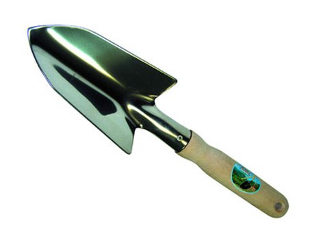 Совок посадочный широкий нержавеющая сталь с деревянной ручкой