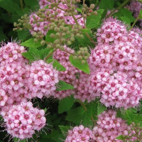 Красивоцветущий кустарник с компактной, округлой кроной, до 60 см высотой и диаметром до 1,2 м. Побеги красно-коричневые с мелкими эллиптическими темно-зелеными листьями, осенью листья окрашиваются в желто – медные тона. Цветет обильно и продолжительно с конца июня до августа. Цветки розовые, собраны в плоские щитковидные соцветия, до 4 см диаметром.