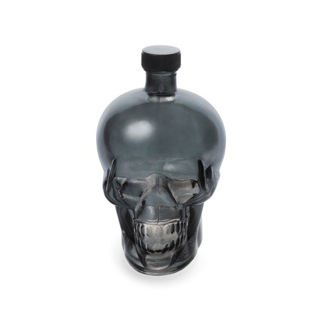 Бутылка стеклянная, выполнена в форме черепа. Материал изделия: стекло. Назначение изделия: для хранения различных пищевых жидкостей, преимущественно для алкогольных напитков. Также используется как элемент декора в интерьере. Укупоривается бутылка винтовой крышкой.