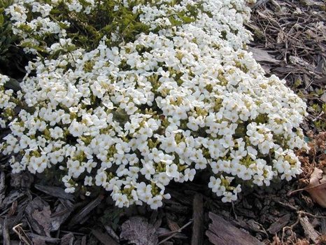 Арабис кавказский Кэтволк Вайт(Arabis caucasica) – травянистый многолетник, приобретающий в период цветения высокую декоративность. Принадлежит семейству Крестоцветные. Листва держится на кусте после цветения, благодаря чему он продолжает радовать глаз своей красотой даже после того как отцветет. цветение длительное, начинается весной.Высота растения около 15 см.Аромат сильно выраженный, приятный.