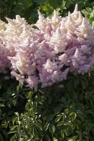 Астильба гибридная. Высота растения 30см. Соцветия розово-белой окраски. Можно выращивать как в открытом грунте, так и в контейнерах.