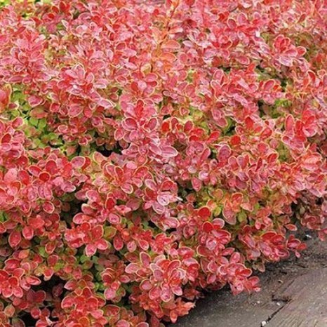 Барбарис Тунберга Корал — многолетний декоративный кустарник с умеренной силой роста, взрослое растение вырастает до 1 метра высотой, крона компактная, округлой формы до 90 см в диаметре. Побеги прочные красной окраски. Лист овальной формы, мелкий кораллово-малинового цвета с золотистой каймой.