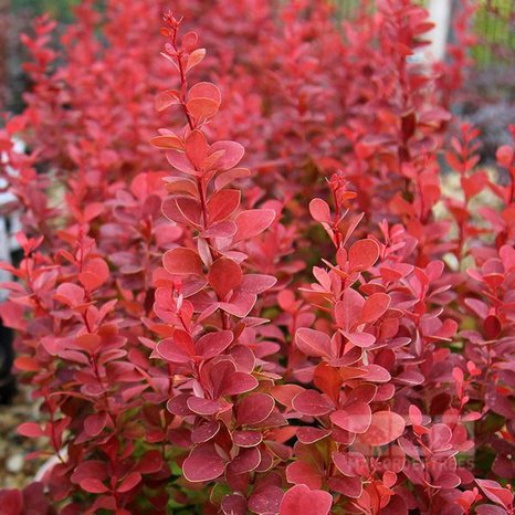Барбарис Тунберга Венис – уникальный, яркий, лицензированный сорт с компактной колонновидной формой и жесткими побегами. В высоту достигает около 80-100 см. Цвет листьев меняется трижды в год: весной малинового цвета, летом становятся красноватыми с интересным расплывчатым узором, а осенью окрашиваются в насыщенно-бордовый. Цветет Барбарис Венис в мае-июне желтыми цветочками. Плоды имеют красный цвет, которые долго хранятся на кустике. Для получения более яркого цвета – барбарис необходимо высаживать на солнышке, чем больше света, – тем более насыщенный цвет листвы. Барбарис Тунберга Венис - неприхотливый, любит дренируемую, влажную почву.