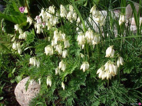 Дицентра (Dicentra) - корневищный многолетник. Цветоводы дали этому растению название “разбитое сердце” за их оригинальные цветы. Стебли прямые, ветвистые, мясистые, до 100 см высотой. Листья крупные, черешковые, перисто-раздельные, большей частью прикорневые, сверху зеленые, снизу сизоватые, голые. Цветки плоские, сердцевидные с загнутыми лепестками, довольно крупные, до 3 см в диаметре, собраны в односторонние, дугообразно изгибающиеся кистевидные соцветия до 20 см длиной. Продолжительность цветения 30-35 дней. Декоративна весь сезон. Морозостойка.