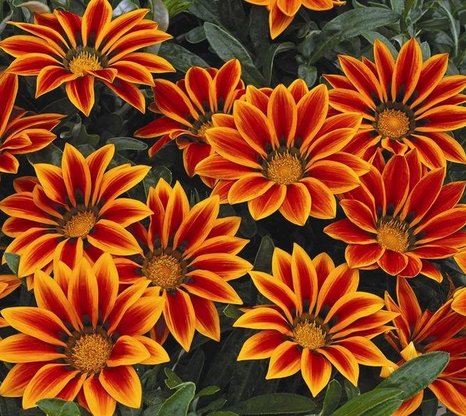 Гацания жестколистная Кисс F1 Оранж флейм, однолетник. Чрезвычайно привлекательная окраска соцветий - ярко-оранжевые лепестки с красной полосой в центре! Растение формирует плотные компактные кусты высотой 20-25 см. Цветы яркие, крупные, до 12-15 см в диаметре. Одновременно на растении может быть раскрыто до 10–15 цветков. Гацания засухоустойчивое, в меру холодостойкое растение, цветет до заморозков. Наибольшая декоративность проявляется в солнечную погоду, хотя цветки не закрываются и при лёгкой облачности. Любит жаркую солнечную погоду!