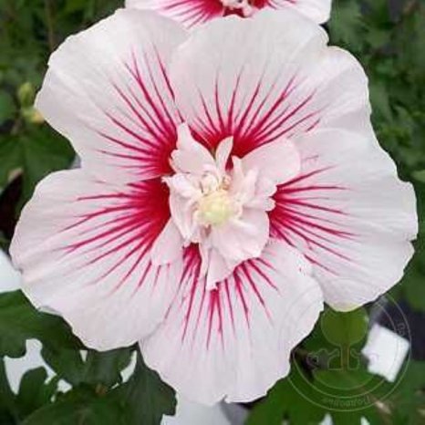 Шедевр из серии «Chiffon». Изящный кустарник с вертикальными крепкими ветвями. Растёт до высоты 200 см. Цветки диаметром 10 см, анемоновидные, снежно-белые со звездообразными яркими пурпурно-красными лучами, исходящими из основания лепестков. В центре расположены многочисленные мелкие лепестки, из-за чего цветок выглядит махровым. Цветение обильное, в июле-сентябре. Листья очень декоративные, мелколопастные, зубчатые, напоминают листья хризантемы, осенью становятся ярко-жёлтыми. Место солнечное, защищённое. Почва плодородная, влажная, дренированная. На зиму требует укрытия, зона 5 (до -23ºС). Не подходит для горшков.