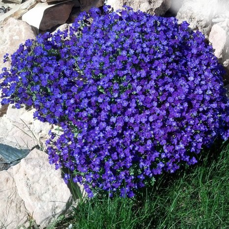 Это эффектное цветущее растение, способное несколько лет расти на одном месте. Побеги и листья остаются зелеными круглый год. Цветение длится все лето. Длина побегов до 35 см. Куст густо покрыт цветками ярко-лилового цвета размером 2 см.