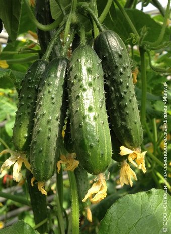 скороспелый партенокарпический суперпучковый корнишонный гибрид сортотипа Балконный женского типа цветения. Предназначен для выращивания на балконах, лоджиях, верандах, в открытом грунте и весенних теплицах. Наибольший урожай получают в теплицах, где растения вырастают самыми мощными, с самыми большими суперпучками. Основная плеть длинная, ветвление ослаблено. Междоузлия короткие. Зеленцы короткие, бугорчатые, белошипые, веретеновидной формы, длиной 7-11 см, диаметром 2,6-3,5 см, массой 60-110 гр., очень красивые. На поверхности зеленцов характерно наличие коротких светлых продольных полосок. Частота расположения бугорков средняя, бугорки средней величины. В узлах стебля и боковых побегов формируется от 2 до 7-11 завязей. На мощных растениях в период активного плодоношения одновременно может наливаться по 12-15 зеленцов. Вкусовые и засолочные качества высокие.