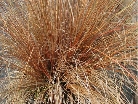 Осока власовидная Бронз Форм - многолетнее травянистое растение. Оригинальность этого сорта заключается в медно-бронзовом цвете листьев. Длина узких листьев до 15 см, а ширина косматой кочки 30-40 см.