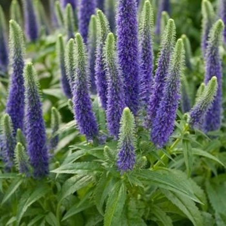 Вероника колосистая Ульстер Дварф Блю - многолетнее травянистое растение. Высота взрослого растения до 30 см, ширина куста до 30 см. Компактный, карликовый кустик, плотный, отлично держит форму. Соцветие колосовидное, сиренево-синее с зеленой верхушкой, очень декоративно. Цветет с середины июня до августа, может цвести повторно при условии удаления отцветших соцветий.
