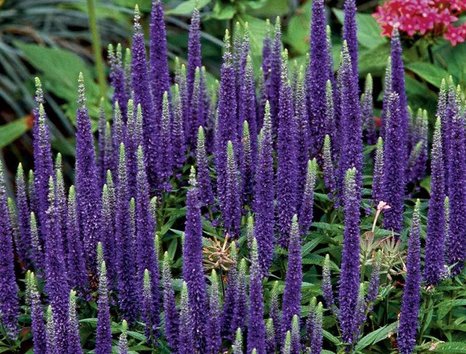 Многолетнее растение с крепкими прямыми побегами, заканчивающимися плотными колосовидными соцветиями из мелких ярко-лиловато-синих цветков. Листья продолговато-яйцевидные, тёмно-зелёные, немного морщинистые.