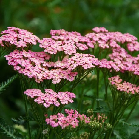 "Тысячелистник Рейнбоу Лихнинг Пинк (Achillea Rainbow Lighning Pink) Куст компактный, прямостоячий, высотой 40-60 см. Цветки розовой окраски, собраны в плотные щитковидные соцветия. Цветет с июля в течение месяца обильно и продолжительно."