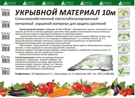 Обеспечивает оптимальный микроклимат для роста растений; предотвращает переохлаждение растений ночью и перегрев днем; уменьшает испарения с поверхности почвы, сохраняет почвенную влагу и снижает норму полива; создает баланс ночной и дневной температуры; позволяет продлить сбор урожая до поздней осени; является надежной защитой от вредителей и болезней; имеет срок службы не менее 3-х сезонов. Укрывной материал на грядку. Посевы или рассада полностью укрываются АГРОСПАНОМ, который свободно, без натяжения укладывается на грядку. Края материала следует присыпать землей или прижать тяжелыми предметами. По мере роста растений прижатые края необходимо высвобождать.