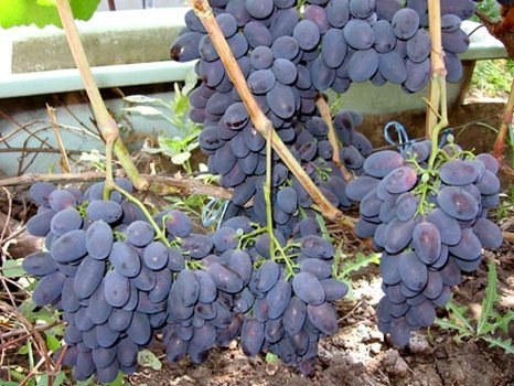 Очень ранний. От распускания почек до сбора первых кистей проходит всего от 110 до 120 дней. Кусты винограда сильнорослые. Масса грозди 400-600 г, отдельные до 1,5 кг. Ягода крупная 31 x 19 мм, 6-8 г, темно-фиолетовая. Вкус простой, но благодаря плотной мякоти, небольшому количеству легко отделяемых семян, кожице не ощущаемой при еде - вкусовые качества хорошие. Сахаронакопление до 18-19%, при кислотности 6-7 г/л. Потребительская зрелость наступает быстро: уже при сахаристости 12-14% виноград вполне съедобен, благодаря быстрому снижению кислотности у этого сорта винограда. Грозди могут долго висеть на кустах без потери вкусовых качеств.