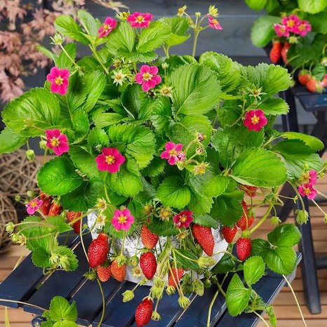 Тарпан - ремонтантный сорт ампельной клубники. Среднего размера плоды вытянутой формы с четким земляничным запахом, мякоть плотная, вкус сладкий с легкой кислинкой. Отличительная особенность - большие цветки розового оттенка и возможность плодоносить усами. Допускается выращивание на балконе, в подвесных кашпо. Нетребователен к освещению. Высокая зимостойкость.