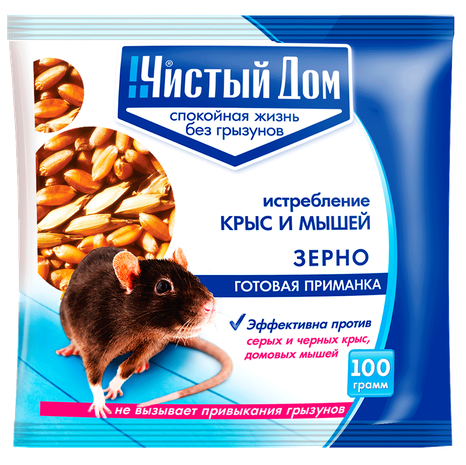 Действующее вещество - бромадиолон 0,005% 2-го поколения, которое обеспечивает быстрое уничтожение грызунов. Универсальное средство для борьбы с серыми и черными крысами и домовыми мышами.